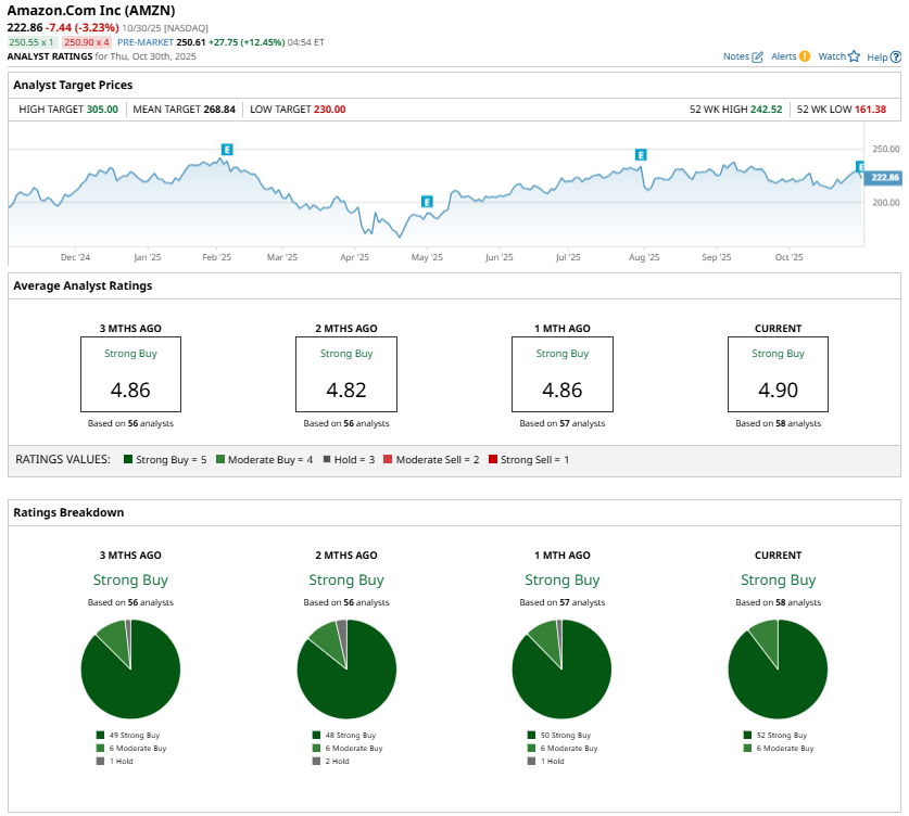 Advertising has been a key driver of growth for Amazon. Ad revenue climbed to $17.7 billion in Q3, with the growth rate accelerating for the third consecutive quarter.  With expanding partnerships and integrations with platforms like Spotify (SPOT) and SiriusXM (SIRI), Amazon is enhancing advertiser reach and unlocking new opportunities, particularly in live sports streaming through Prime Video.