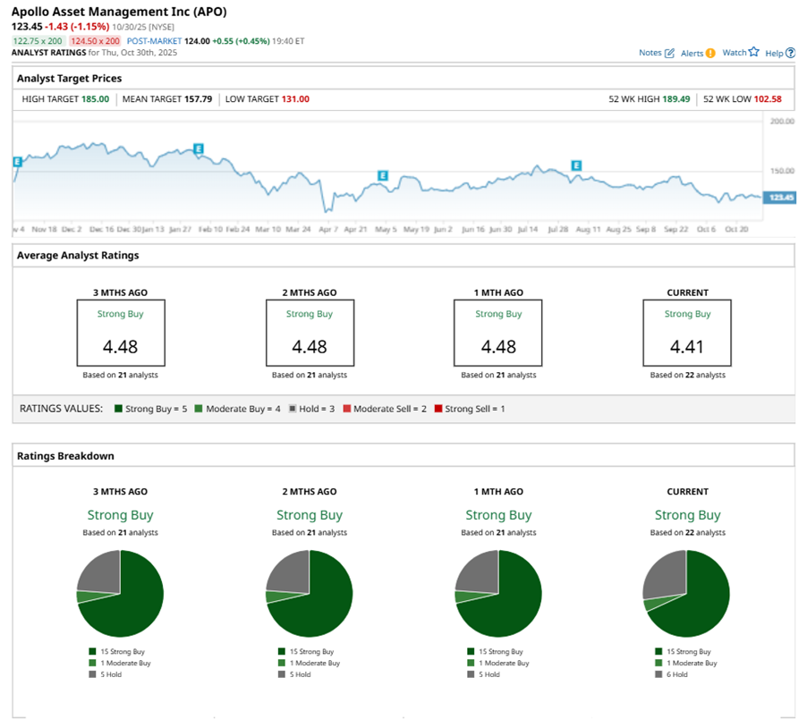 On Oct. 21, Morgan Stanley (MS) kept an “Equal Weight” rating on APO and lowered the price target to $151, implying a potential upside of 22.3% from current levels.