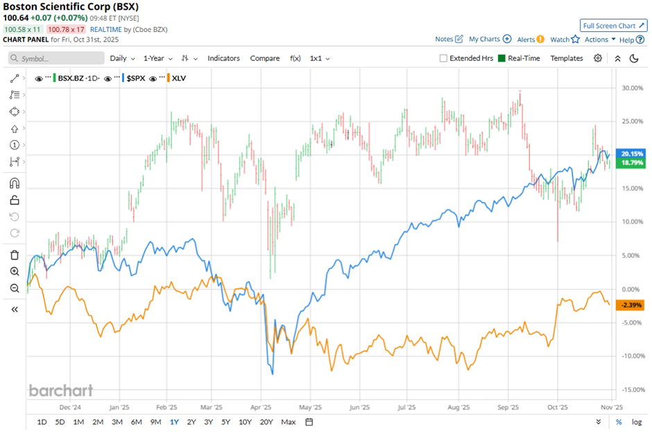Shares of Boston Scientific rose nearly 4% on Oct. 22 after the company reported better-than-expected Q3 2025 adjusted EPS of $0.75 and revenue of $5.07 billion. The company also raised its 2025 adjusted EPS forecast to $3.02 - $3.04 and guided Q4 adjusted EPS of $0.77 - $0.79, above the consensus. Investor optimism was further fueled by strong demand for its heart devices, including a 23.1% jump in electrophysiology sales driven by the Watchman and Farapulse systems, along with improving operating margins despite tariff headwinds.