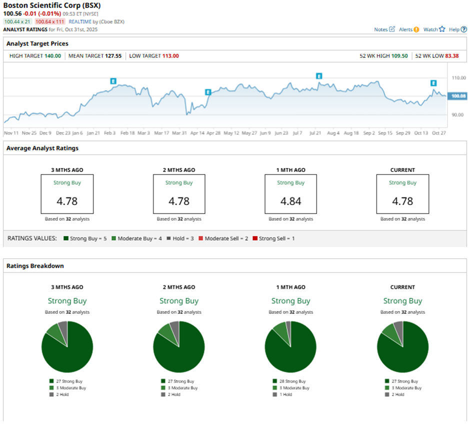 On Oct. 23, UBS raised its price target on Boston Scientific to $140 and reaffirmed its “Buy” rating.