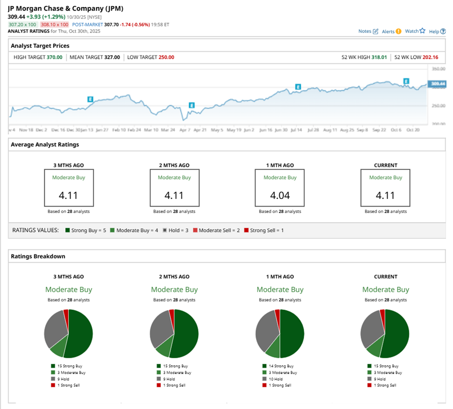 On Oct. 15, Morgan Stanley (MS) kept an “Equal Weight” rating on JPM and raised the price target to $338, implying a potential upside of 9.2% from current levels.