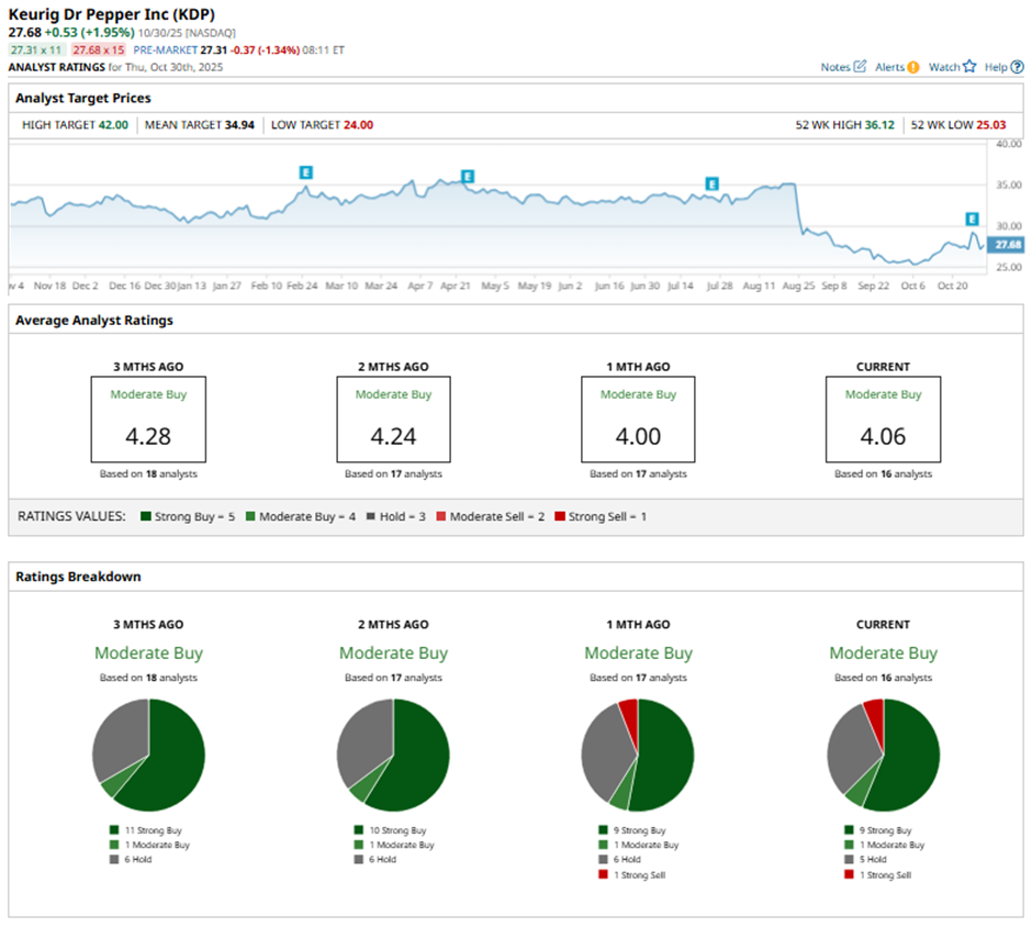 On Oct. 29, Jefferies lowered its price target on Keurig Dr Pepper to $39 but maintained a “Buy” rating.