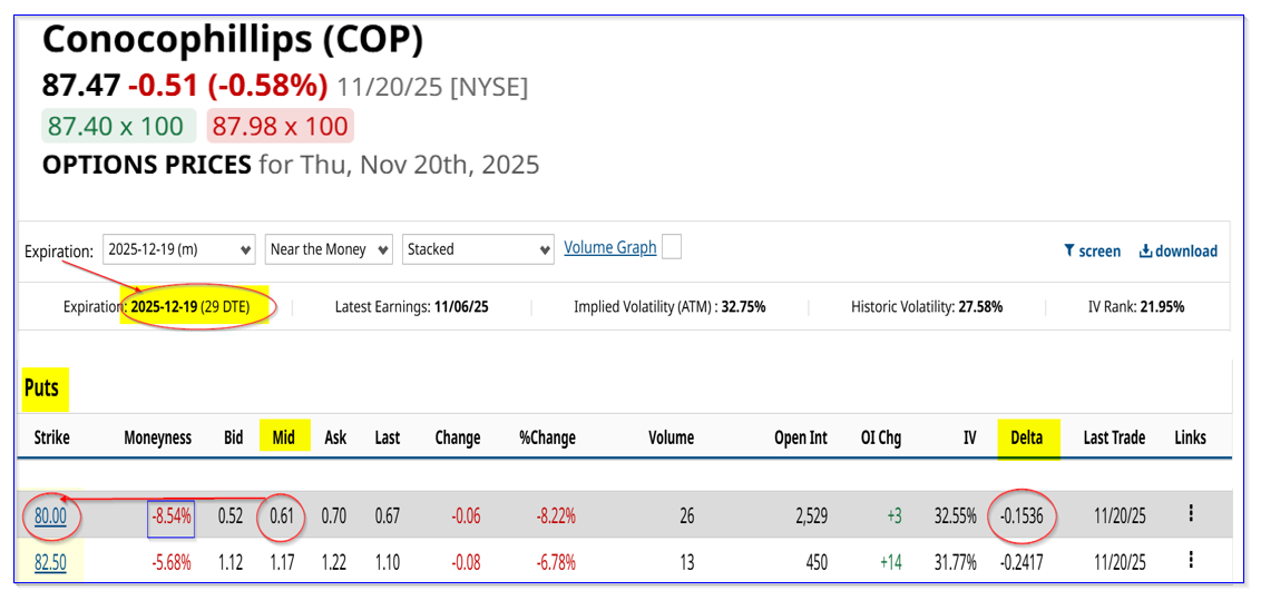COP puts expiring 12/19/25 - Barchart - As of Nov. 20, 2025