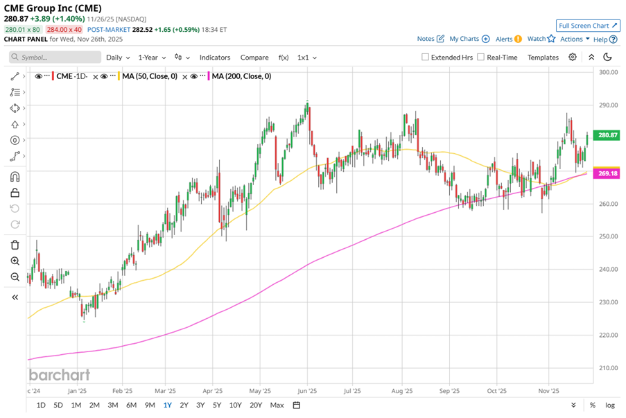 The longer-term picture adds even more clarity. CME stock has climbed 20.9% on a year-to-date (YTD) basis and surged 19.8% over the past 52 weeks. That performance slightly edges out the NASX’s YTD gains of 20.2%, though it narrowly trails the broader index’s 21.1% rise over the past year. CME may not be sprinting, but it is keeping pace and occasionally outshining the market’s fastest runners.