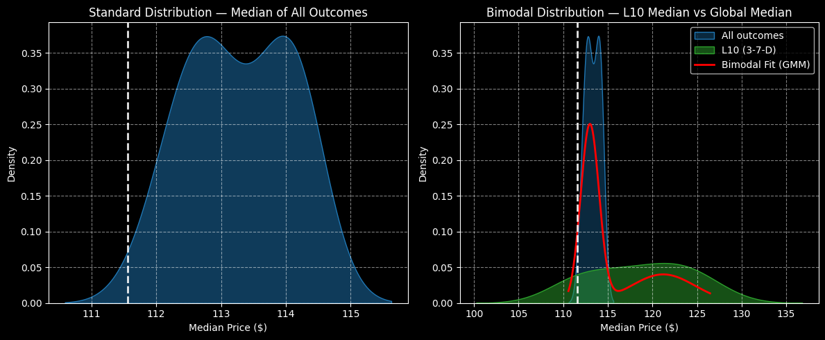 Fundamentally, the idea is to uncover the probability density or the price point where NTAP stock tends to cluster the most over the next 10 weeks. Then, under the principle of heteroskedasticity, we run trials specifically on the signal that NTAP has currently printed to reveal its conditional probabilistic structure. If a positive variance exists — and spoiler alert, there is — then we may have found a structural arbitrage.