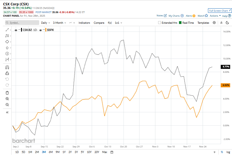 Shares of the company have decreased 5.1% from its 52-week high of $37.25. CSX’s shares have risen 8.3% over the past three months, outperforming the S&P 500 Index ($SPX5.3% surge over the same time frame.