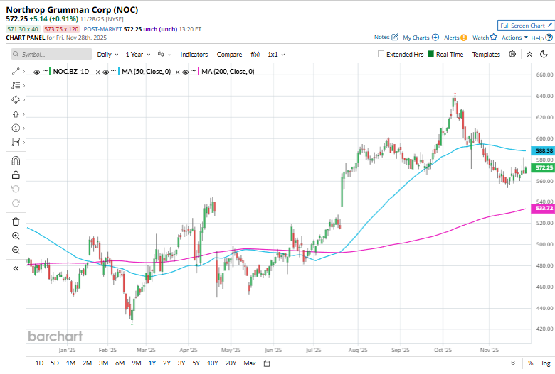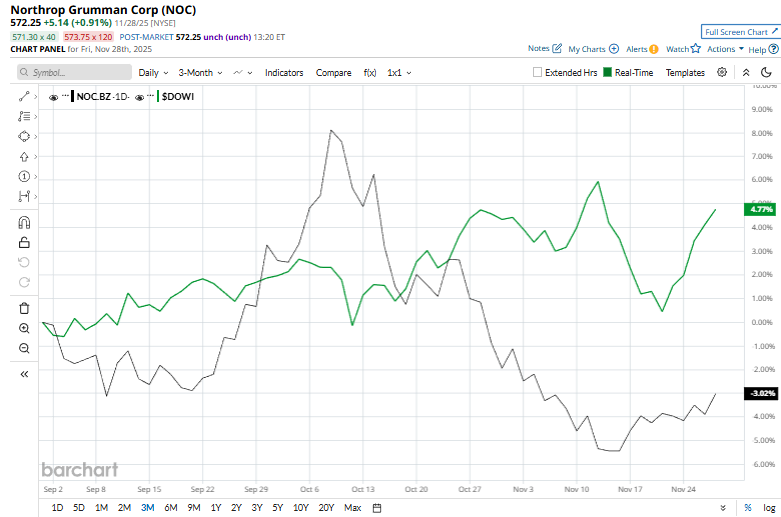 Despite this, shares of the company have declined 10.7% from its 52-week high of $640.90 met on Oct. 10. NOC stock has dipped 2.7% over the past three months, outpacing the broader Dow Jones Industrial Average’s ($DOWI4.6% rise over the same time frame.