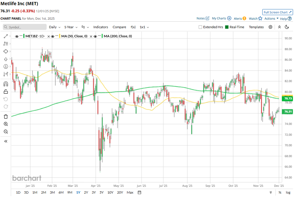 With a market cap of $50.3 billion, MetLife, Inc. (MET) is a global financial services company offering insurance, annuities, employee benefits, and asset management solutions. It operates through six major segments, including Group Benefits, Retirement and Income Solutions, and international regions such as Asia and Latin America.