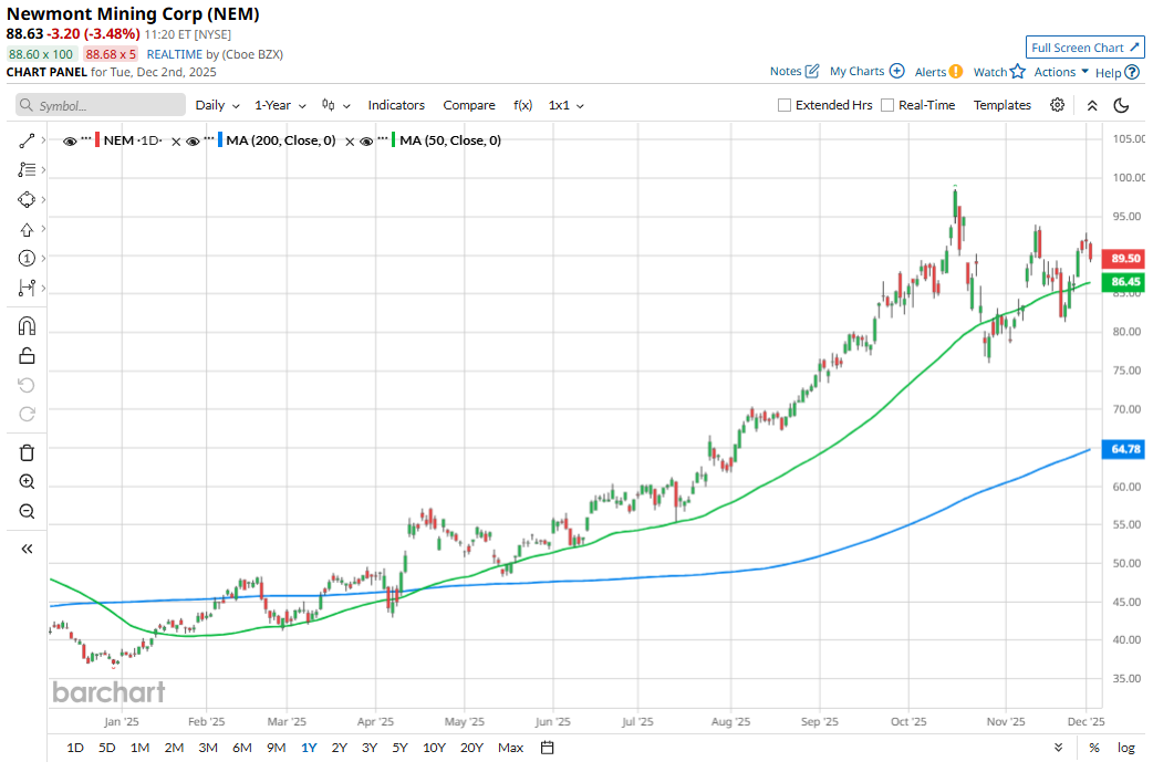 Newmont Corporation (NEM) is one of the world’s leading gold- and precious-metals mining companies. Headquartered in Denver, Colorado, the company’s core business involves the exploration and production of gold, but it also extracts copper, silver, zinc, and lead across a global footprint. Newmont’s market cap is roughly $98.4 billion.