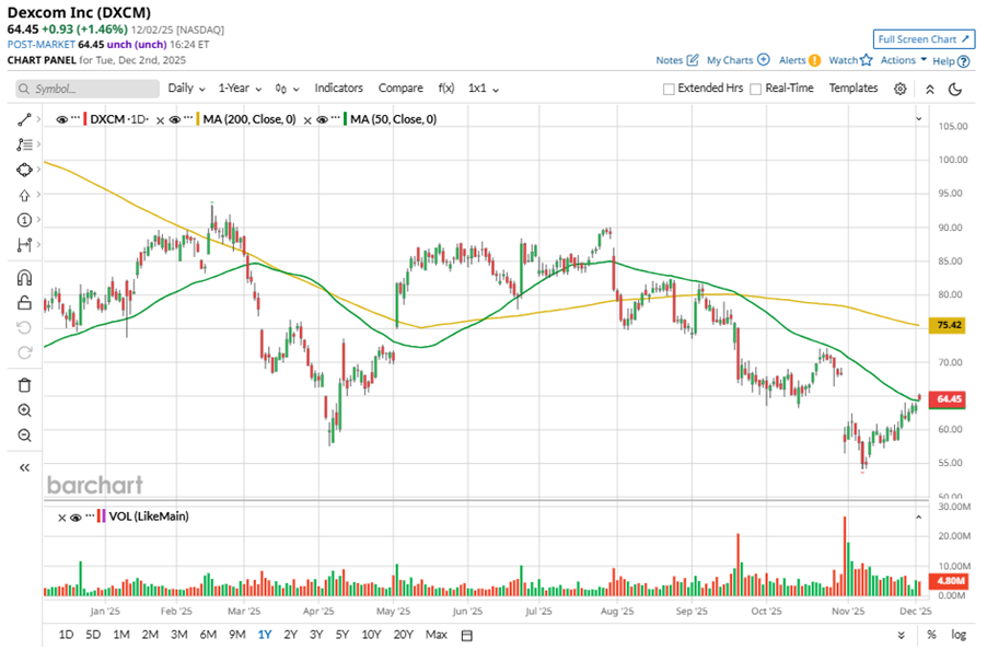 Despite its notable strength, DXCM slipped 30.9% from its 52-week high of $93.25, achieved on Feb. 18. Over the past three months, DXCM stock declined 13.3%, underperforming the S&P 500 Index’s ($SPX) 6.5% gains during the same time frame.