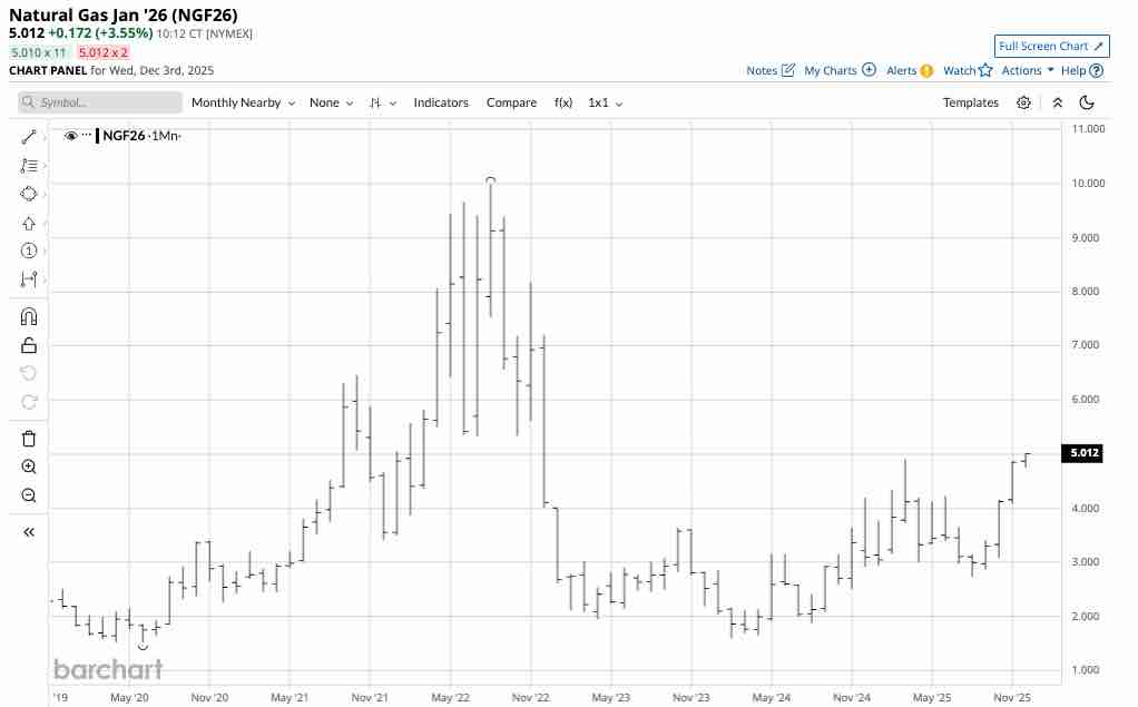 In a November 7, 2025, Barchart article on natural gas, I concluded with the following: