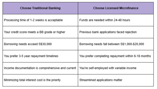 Singapore's regulated lending environment protects consumers through both channels. Whether you select traditional banking or explore licensed microfinance alternatives, prioritize lenders demonstrating transparency, technological innovation, and strict regulatory adherence. The right borrowing choice aligns your specific financial profile, timeline constraints, and repayment capacity with the lending channel designed to serve those exact parameters.