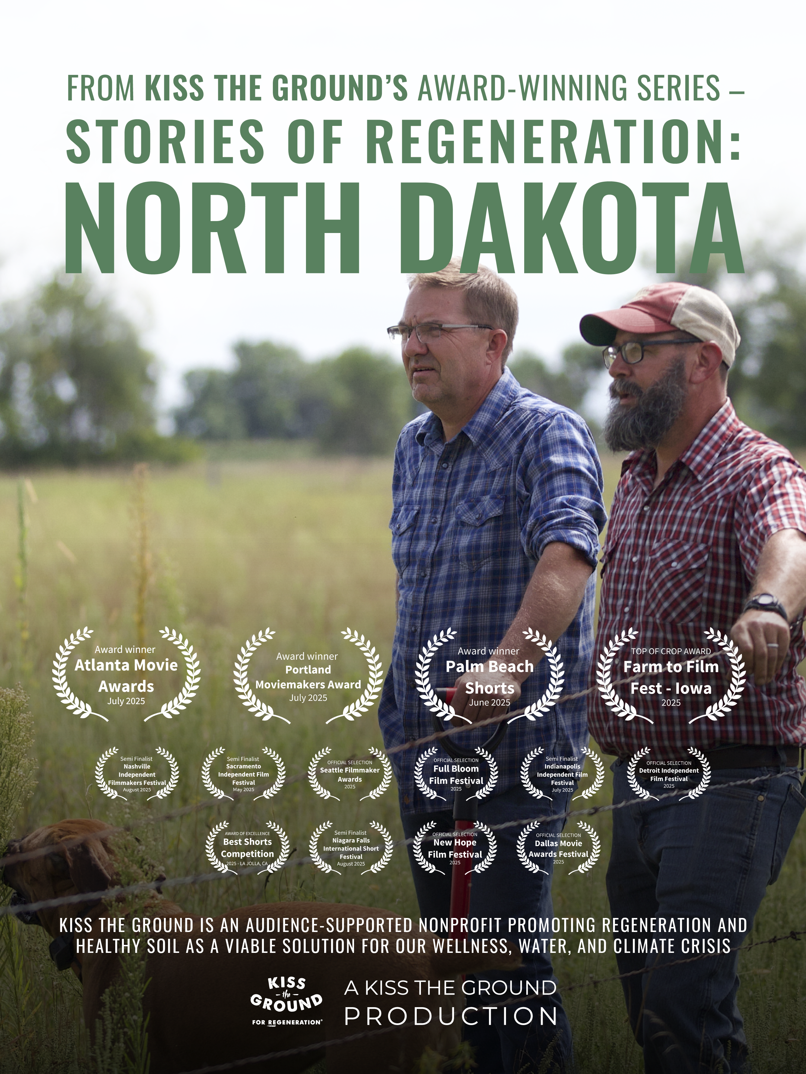 Kiss the Ground’s recent short film “Stories of Regeneration: North Dakota” has earned recognition from 14 film festivals—including the Detroit Independent Film Festival, Dallas Movie Awards Festival, Nashville Independent Filmmakers Festival, Full Bloom Festival, and New Hope Film Festival—and has been screened at venues across the country. The film has also earned five awards: