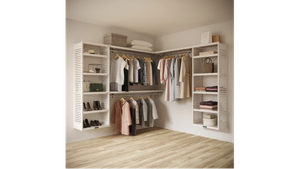 John Louis Home introduces solid wood L-shaped closet organizers designed to maximize storage in walk-in closets.
