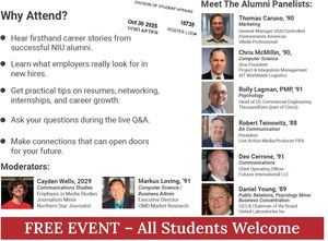 DeKalb, Illinois - October 22, 2025 - Northern Illinois University students will have a rare opportunity to hear firsthand how successful alumni built their careers when Sigma Phi Epsilon’s Illinois Epsilon chapter presents “Beyond the Degree: How NIU Alumni Built Their Careers” on Wednesday, October 29 at 6:00 PM in Holmes Student Center, Room 505. The free event brings together a diverse panel of alumni leaders from marketing, logistics, engineering, media, finance, and manufacturing to give practical, actionable advice on resumes, networking, internships, career growth, and more.